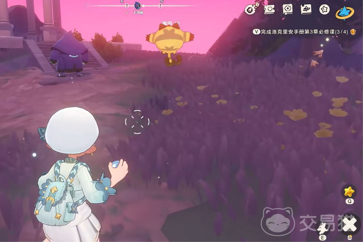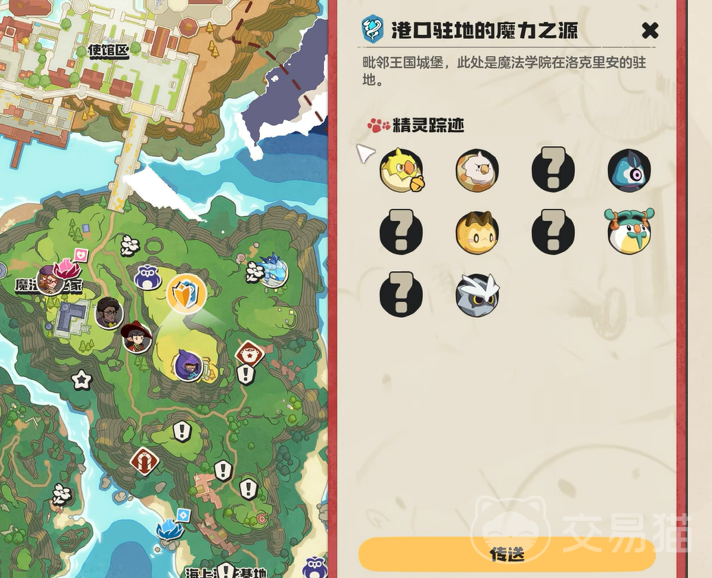 首先大家可以打开地图,然后直接来到港口驻地的魔力之源。然后后面向山顶那一边,有个小亭子的地方。大家直接跑到那里去,在这里有一个噩梦形态的梦想三三。不过它的旁边也有逗逗出现,玩家们可以直接绕过噩梦形态,在旁边就能够看到逗逗了。