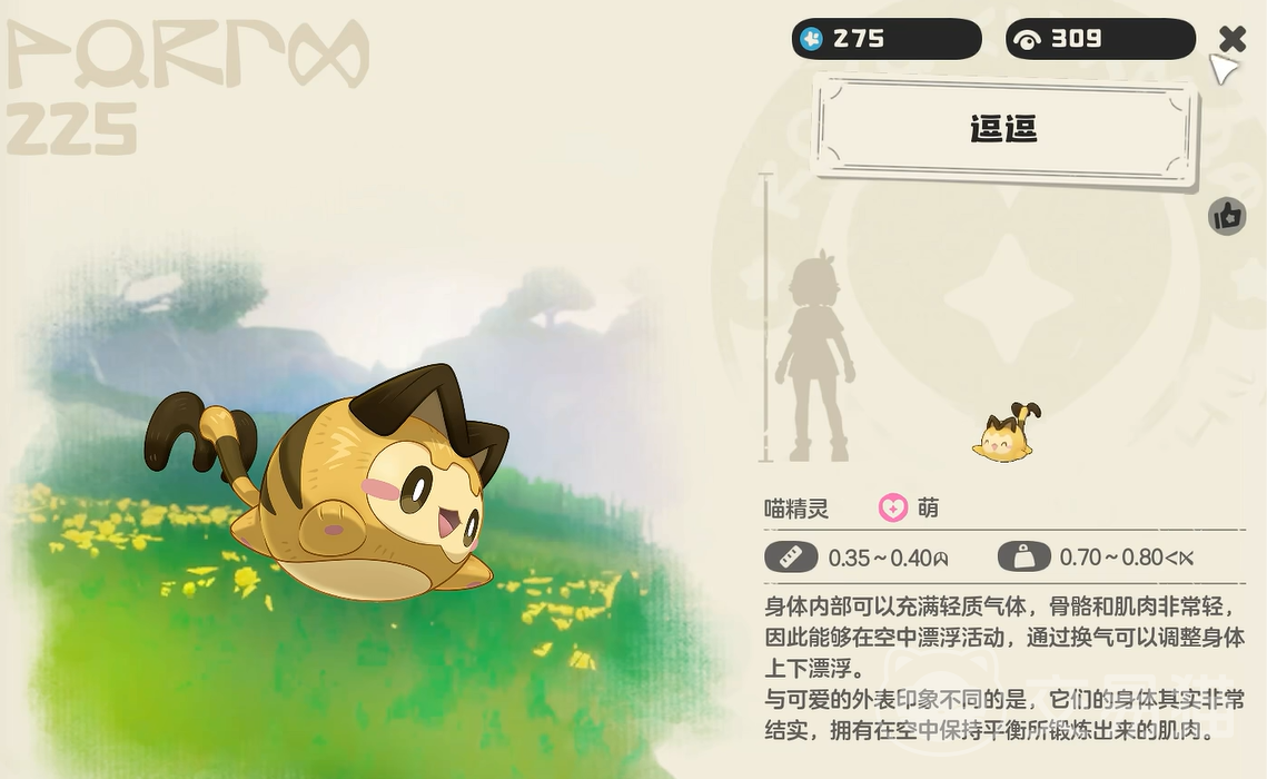 逗逗其实是犹如猫咪一般小巧可爱的精灵,并且全身鼓鼓的,就像一只气球一般漂浮起来。因为它的骨骼和肌肉都相当轻盈,就算是一只陆地生物,,但是它也可以不断漂浮。大家不要被它萌趣的外表所蒙骗,其实它的肌肉力量非常扎实。
