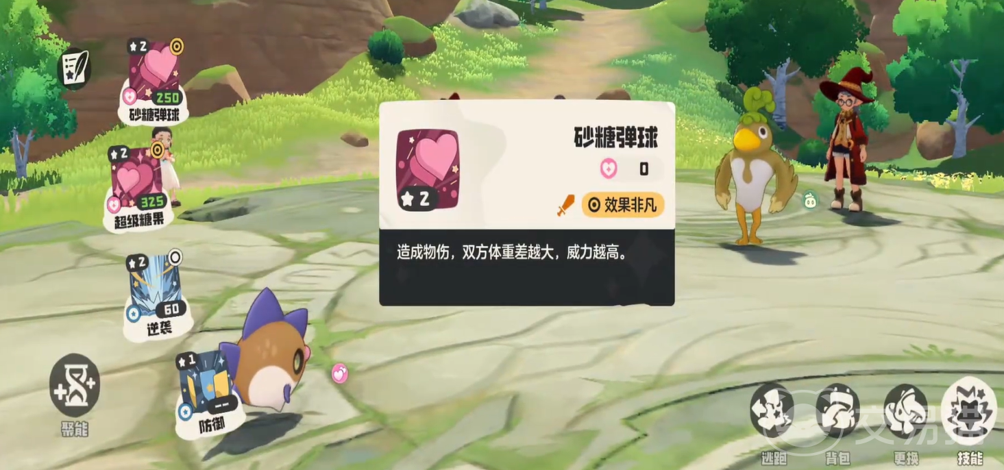 开始之前只需要点击精灵的头像,就可以决定哪一个先出场。出场之后就会投掷精灵球,让精灵出现在场地中,并与敌人的精灵展开决战。如果大家出场时是暗属性精灵,然后对方是水属性精灵的话。自己受到的伤害降低,如此就能获得优势。
