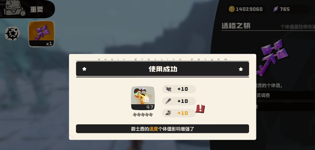 以炫彩爵士鹿和翼龙为例,在这里就会有两种评价,一种是了不起,一种是相当好。在于个性数值有没有增加性格提升的属性,如果精灵的属性可以派上用场,那么玩家就可以直接用钥匙去微微的调整,操作的方法很简单的。
