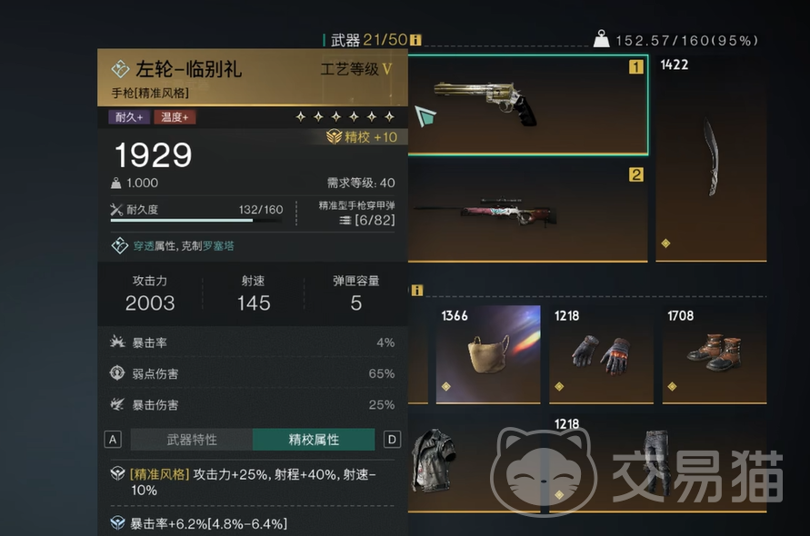 首先要提的,必定是“临别礼”这把四星手枪。虽然它的星级并不算最高,但却是前期非常值得培养的选择。别看它的基础属性看起来平平无奇,但这把枪最大的优势在于它的特殊技能。使用这把手枪时,有机会进入“快枪手”状态,角色的攻击速度会大幅提升,并且一次性装填所有子弹。除此之外,击中敌人时还可能消耗额外子弹,虽然这会稍微减少子弹数量,但能够大幅提升伤害输出。在弹药充足的情况下,它的表现甚至能让你秒杀敌人,十分值得在早期就加以培养。