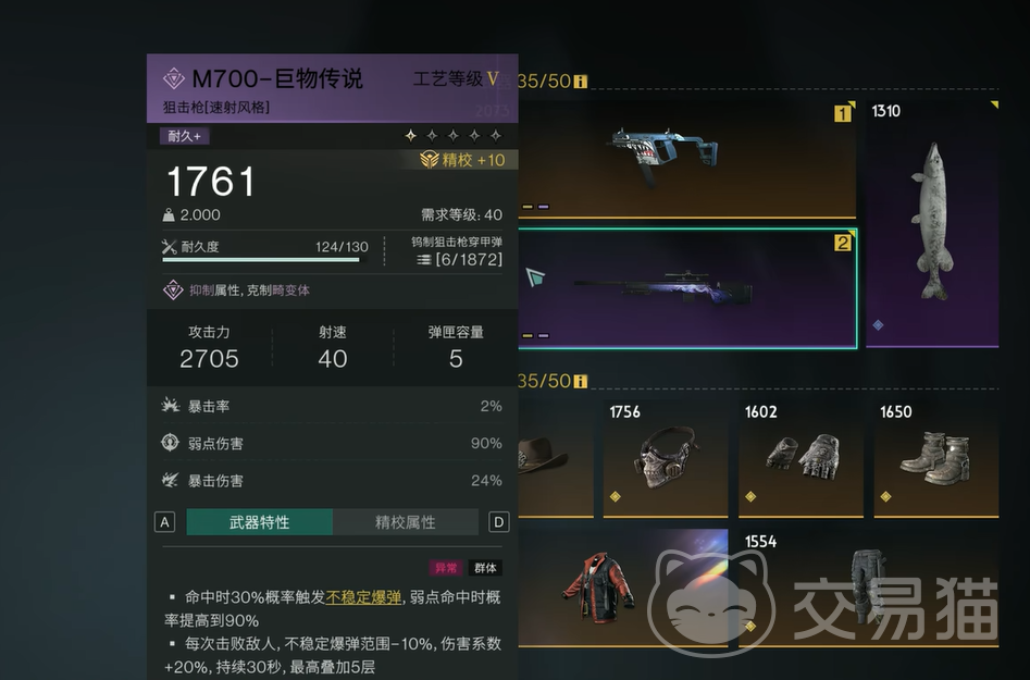 不能不提的还有“小白鲨”,这把枪的名字听上去也许没那么威猛,但它在攻击速度上有着显著的优势。基础伤害不算高,但它的攻击速度达到了1000,非常适合进行快速的持续输出。而且,它的特性之一是能在连续命中敌人15次后触发不稳定爆弹效果,爆炸的伤害随着命中次数的增加而逐渐增强,尤其是命中敌人弱点时,爆炸伤害还能翻倍。可以说,这把武器的持续输出能力非常强大,战斗中的稳定性也非常高。
