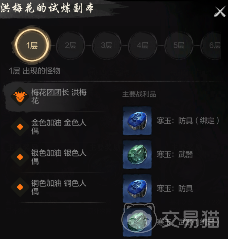 洪梅花年仅二十多岁,就接过父亲重担,执掌梅花团。战斗中,她手持重型武器斧,极具威慑力。她是试炼副本的首领BOSS,击败后,玩家将收获丰厚奖励。其中包括大量用于提升武器与防具的材料道具,如寒玉防具(绑定)、寒玉武器(绑定)、寒玉武器、寒玉防具等。值得一提的是,部分非绑定道具,玩家可挂到交易所售卖,赚取游戏金币。