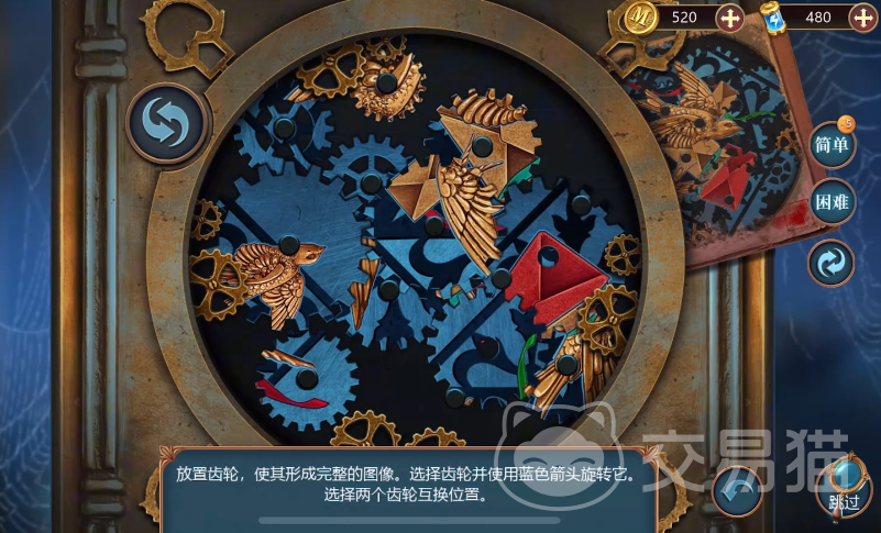 将把手安装在木箱上面并打开,里面有齿轮和壶球,左边的木箱上面有渡鸦符号。用坏掉的刀隔开布袋的补丁,拿到里面的拼图碎片,将渡鸦符号撞到之前木箱里面的盒子上,获得第3个碎片,3个碎拼放到拼图里面,拼接好水管,获取钳子。使用钳子去下对门山的钉子,能拿到小屋的钥匙,打开小屋。