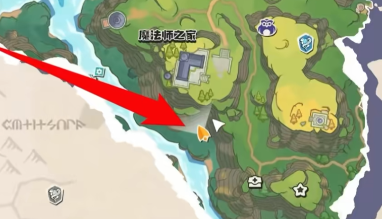 第七个就比较好找了,就在魔法师之家这里的山崖下面。