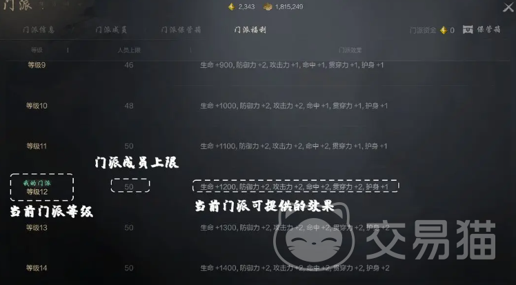 在加入门派之后,玩家可以享受五千点生命数值的增加,并且还能够附带有,防御力数值增加七点,以及攻击力增加七点的效果,随着门派等级的提升,该效果的倍率,也会逐渐加强,最高为生命数值增加15000点。