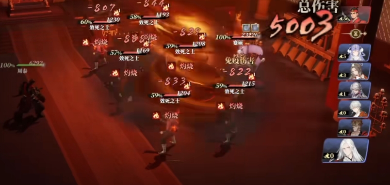 孙权作为辅助角色,能够提供额外的拉条效果,帮助队伍更快地叠加灼烧层数,周泰则可以增加队伍的生存能力,保证输出角色的安全,甘宁作为一个强力的物理输出角色,可以在必要时补充队伍的伤害,而任意奶则为队伍提供了持续的治疗支持,确保队伍在战斗中保持良好的状态。