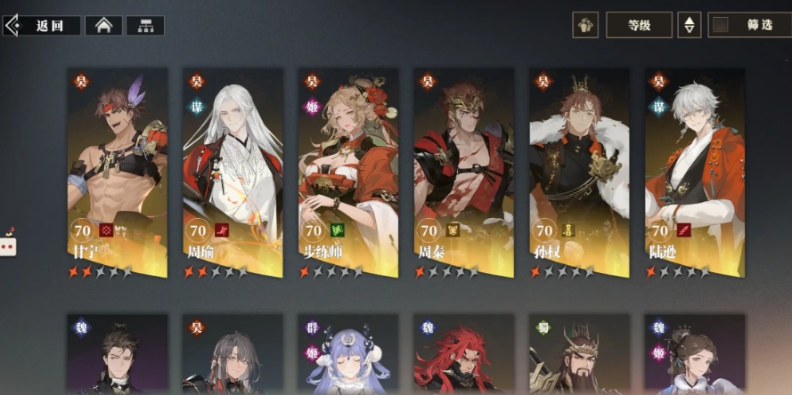 这里优先倾斜资源给周瑜陆逊。孙权对于优化循环提升很大,尤其吴国这种高速耗费多都阵容,20战意大招给友方-30战意还提速,等于无能耗白嫖主c大招,而周泰+甘宁的搭配其实优点是便宜,甘宁白送,周泰也只需要本体即可,并且PVE相对泛用。缺点就是奶位没有神级奶之前一个周泰基本扛不动伤害,很容易暴毙,而且周泰暴毙之后通常意味着灭队。
