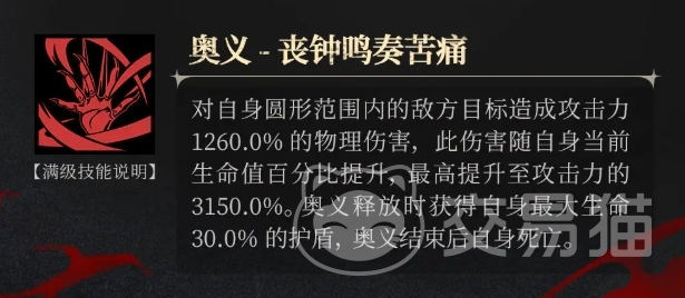 她的奥义技能拥有超高的消耗,但相应的其威力也是惊人的,一旦释放它能够对自身圆型范围内的敌方目标造成高达攻击力1260%的物理伤害,更令人惊叹的是,这个伤害还会随着魅丝当前的生命值百分比而提升,最多能够提升至攻击力的3150%,这意味着当魅丝的生命值较低时,她的奥义技能将变得更加致命,然而魅丝的奥义技能并非没有代价。
