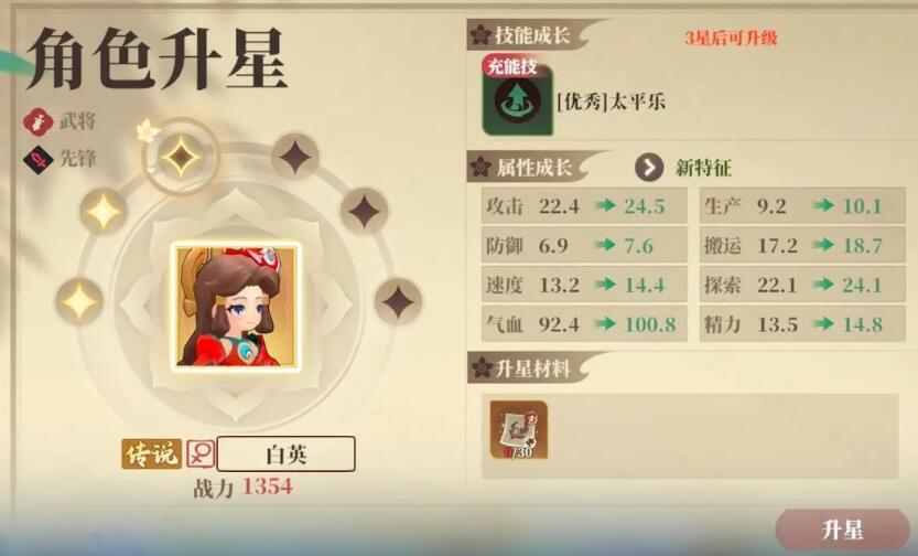 角色分为主力战斗、生产职业两类。前期主力队伍建议5-6人,优先培养紫色品质影卫、甲士,而且,满星紫色角色强度高于低星金色如下图。战斗时注意敌人属性,点击敌方头像查看技能信息,布阵时搭配坦克、治疗、输出职业生产职业需根据建筑需求配置,铁匠、木匠、裁缝各1名,中期扩充至各2名保障装备生产线。