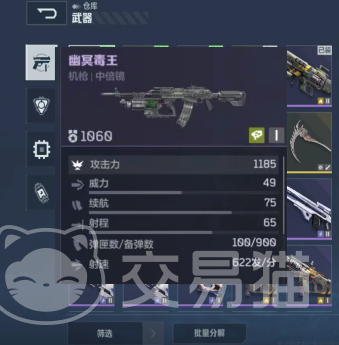 幽冥毒王:这就是一个轻机枪,拥有很不错的续航能力。生化炮的存在就可以让这一把枪械拥有较强大的控制能力。在塔防的模式中面对高防御的目标,照样可以轻松的清理小怪。