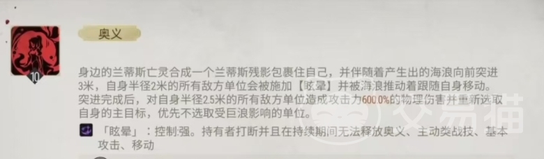 玛伊雅弥立约的奥义技能使用的时候,她身边的亡灵会合成一个兰蒂斯残影,紧密地包裹着自身,随后她会向前突进,这一过程中自身范围内的所有敌方单位都会被眩晕,陷入短暂的失控状态,然后在海浪的推动下,这些敌方单位会跟随她移动,突进完成之后,她还会再次造成一次物理伤害,并重新选择自身的主目标,而且她的奥义技能伤害范围较大,且具有强制效果,在奥义释放途径完成后,每个亡灵还会驱散奥义命中的敌方单位身上的一个增益效果。