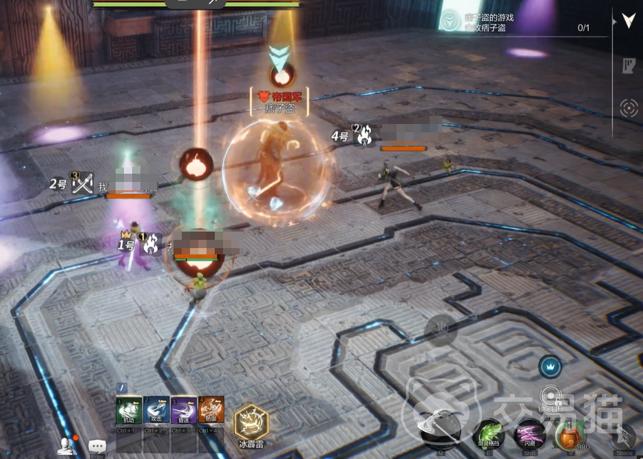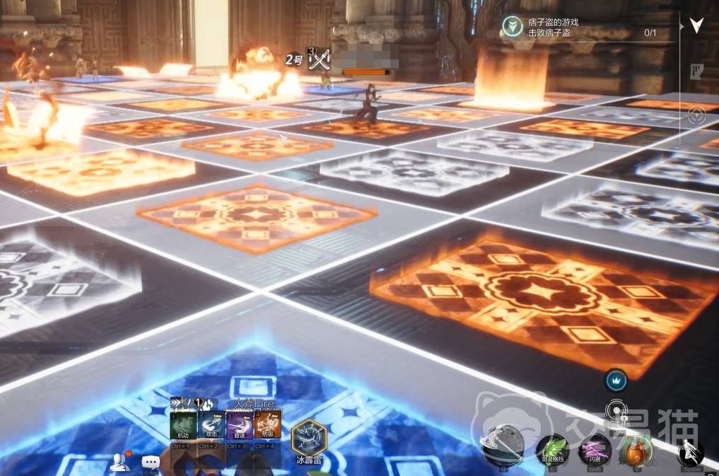 只不过这次领域内的痞子盗是可以受到伤害的,但是输出方式需要进行变换,因此全场都会出现红方块和蓝方块,红方块触发的时候会进行额外的爆炸,玩家们需要立即移动到蓝色或者白色方块,然后对准boss输出,只要将boss的血量压低,最后boss进入残血,场地消失可以全队一起输出带走了。