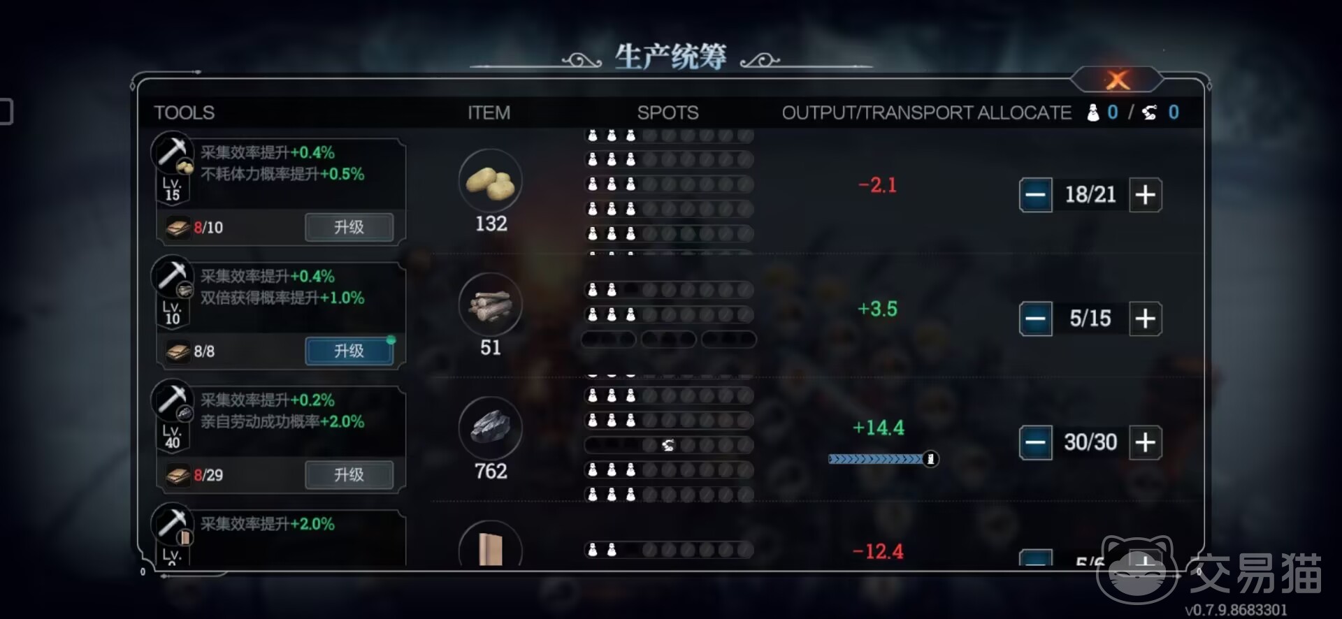 其次萌新需要了解资源的交换与获取。关于物资交换,有很多特殊物资是不容易获取的 ,玩家可以去工人那里看看是否有你需要的材料,如果有的话可以用食物与他们交换。物资获取有很多方法,可以通过基地的生产,也可以外出搜索等等。