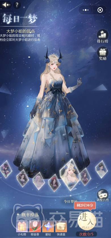 每日一梦中的第一个boss是美梦公主,打她主要思路是带好暴击属性高的搭档来堆暴击,奶妈用来回血保证自己在有限回合中打出最高伤害,由于每日一梦玩法每日可以参与5次,并根据玩家打出的最高伤害来给予不同奖励。