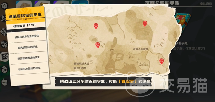 大家可以在轻风山接取到该任务,然后大家第一步可以先选择挑战冒险家,此时在手账上会有四个学生需要你挑战,对话并打败即可,全程很简单,只需要按图上的位置去找就够了,全部挑战完后就可以找老师继续挑战了。