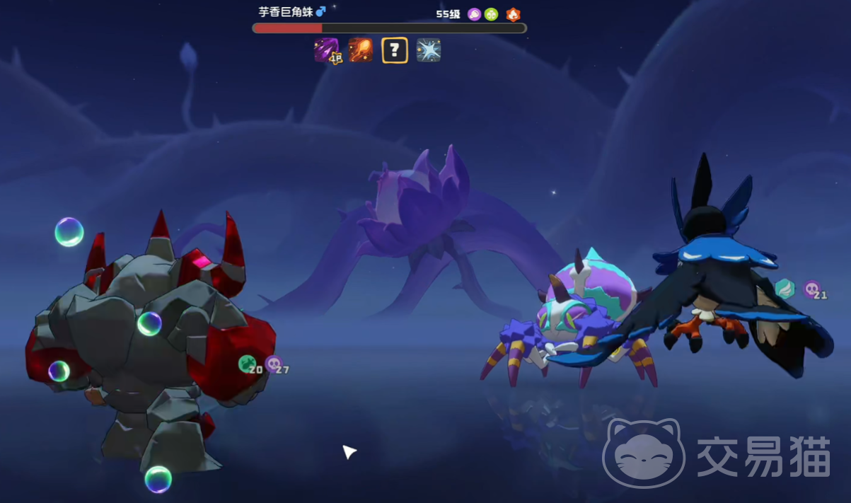芋香巨角蛛的种族值相当均衡,尤其在生命值和双防方面表现突出,使其能够承受大量伤害,保证在战斗中的持久性。生命值高达135,使它在持续作战中具备极高的生存能力,而物防和魔防同样处于上游水平,使其面对多种攻击类型时都有不错的应对能力。虽然它的物攻和魔攻数值并不算顶尖,但它的主要输出方式并非依赖直接伤害,而是通过毒系技能进行持续消耗和削弱敌方战力。100点速度值虽然不是最快的,但在对抗大部分宠物时仍然能够抢占先机,确保其关键技能能够优先释放。