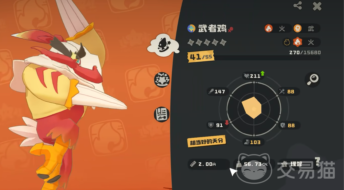 当然在获取之前,各位对于该精灵的了解其实仍旧有限。其实这是一只火属性的精灵,生命值的话高达200多。另外攻击力也很夸张,高达147。然后还有其它的防御属性,它的天分相当之好,性格则令人感到讶异,是一个很有理性的精灵。