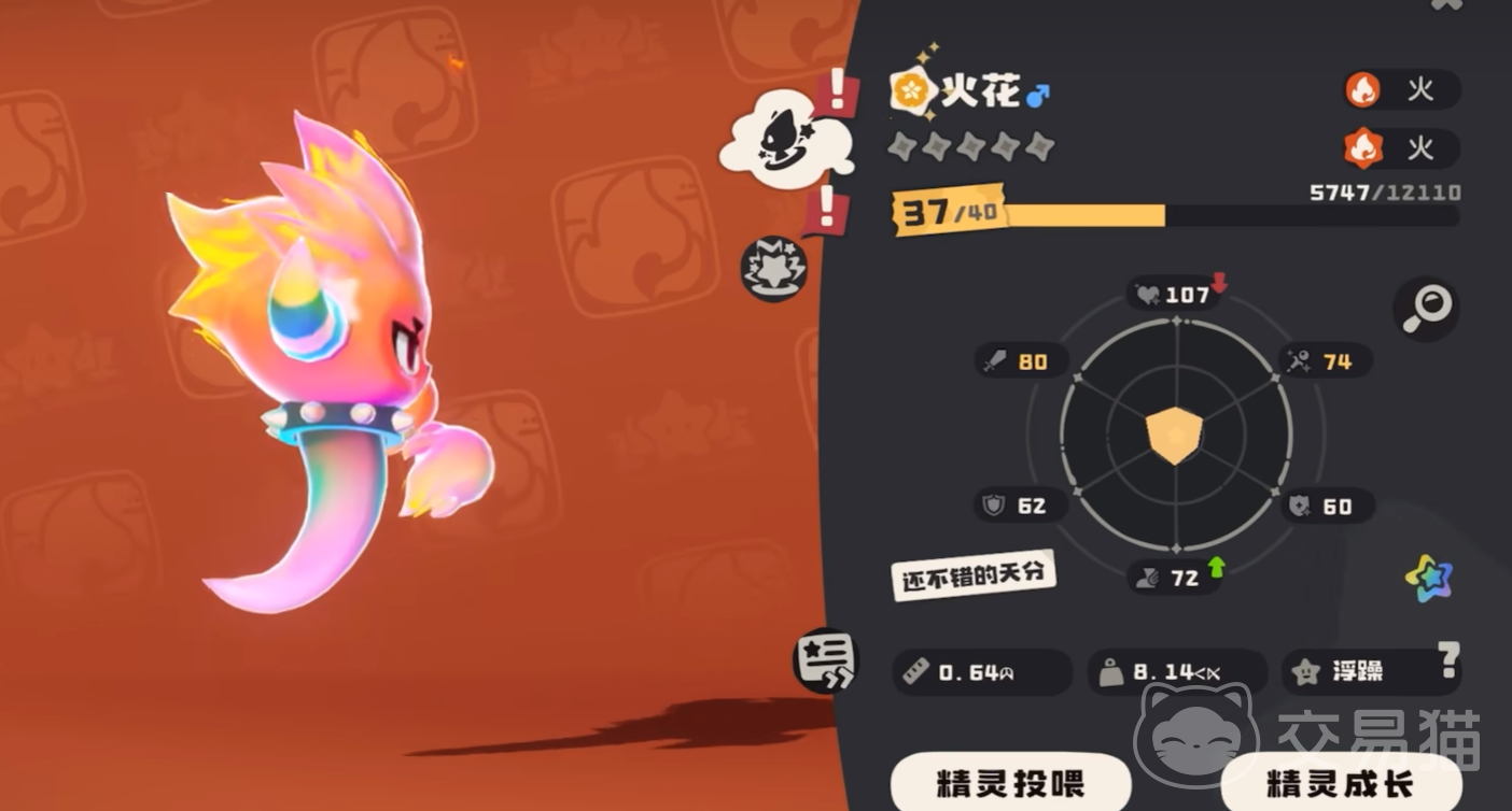 捕捉到火花精灵之后,玩家就可以让它进行净化和升级了,这里需要注意的是火花精灵要到二星级的时候才可以开启进化。进化的第一阶段是焰火,整体的形象会更粗壮一些,能力和火元素也会更多一些,焰火在进行最终进化之后就能够获取到火神了。