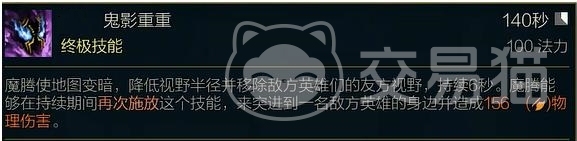 最后,魔腾的R技能“鬼影重重”是他的标志性技能。首次释放时,魔腾能够大幅度减少敌方英雄的视野范围,并移除敌人共享的视野。这一效果使得魔腾能够更加隐蔽地进行游走和击杀,尤其是在敌方视野受到限制的情况下,魔腾可以利用其强大的机动性进行精准的打击。而R技能的第二段释放则使得魔腾能够突进至敌人身边,并对其造成物理伤害,这一机制让魔腾在团战中的打击效果非常显著。