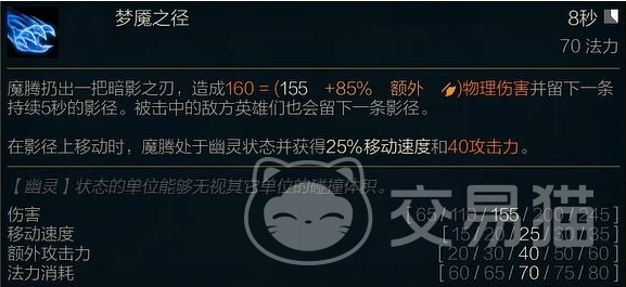 Q技能“梦魇之径”是魔腾的一项关键技能,它能够对命中的敌人造成物理伤害并在地面上留下影径。敌方英雄若在影径中移动,会获得额外的加速和攻击力加成,同时魔腾也能够通过影径穿越障碍物,轻松追击敌人。影径的效果不仅提升了魔腾的机动性,还能有效增加他的输出,尤其是在团战中,能够使魔腾快速接近敌人并进行击杀。