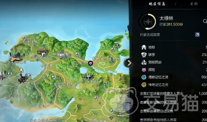 太绿林的轶事探索方式与半月湖有相似之处,同样需要玩家寻找石碑,这里的石碑记载内容多与森林中古老部落、神秘生物相关,灵玉大地的轶事探索相对复杂,玩家进入该区域后,需要进行多方面探索,一方面,要对区域内所有建筑和地形进行踩点记录,另一方面,还需与区域内NPC互动,深入调查当地历史,只有完成操作,才能获取灵玉大地的点数奖励。