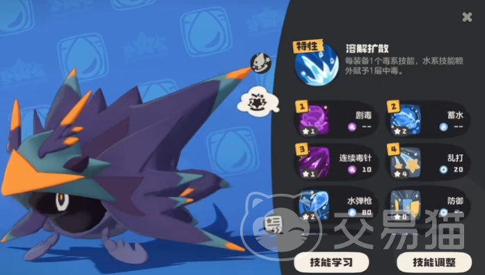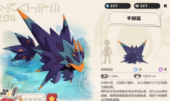 千棘盔有两种类型的技能,毒系技能有毒雾弥漫,千棘盔喷射出浓郁的毒雾,对敌方全体造成毒系伤害,并使敌方全体陷入中毒状态,中毒状态下,敌方宠物每回合会损失一定生命值,持续回合数随机,一般在3回合左右,技能不仅能在当前回合造成可观的伤害,还能通过持续的中毒效果,在后续回合中不断消耗敌方血量,打乱敌方的战斗节奏,千棘盔凝聚毒系能量,向前方穿刺,对单个敌人造成高额毒系伤害,若敌人已处于中毒状态,能发挥出强大的输出能力。