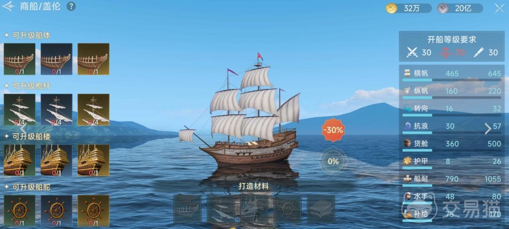 其实合理用材料、船型选择与资源是我们零氪玩家快速提升造船等级的关键。游戏内船只分为东方与西方两条科技线,材料按等级划分为5-6级、7-8级、9-10级三类。新手初期可在地中海区域获取5-6级基础材料,优先用于东线船型建造,因其图纸可通过商店直接购买且通用性强。7-8级材料建议集中造西线7级冒险船(小编推荐毛毛虫),该船兼具速度与载货量,成型后可快速转手换取红钻。9-10级材料直接跳过过渡船型,专注建造西线10级商船,虽速度较慢但载货量与战斗属性均衡,适合长期使用。