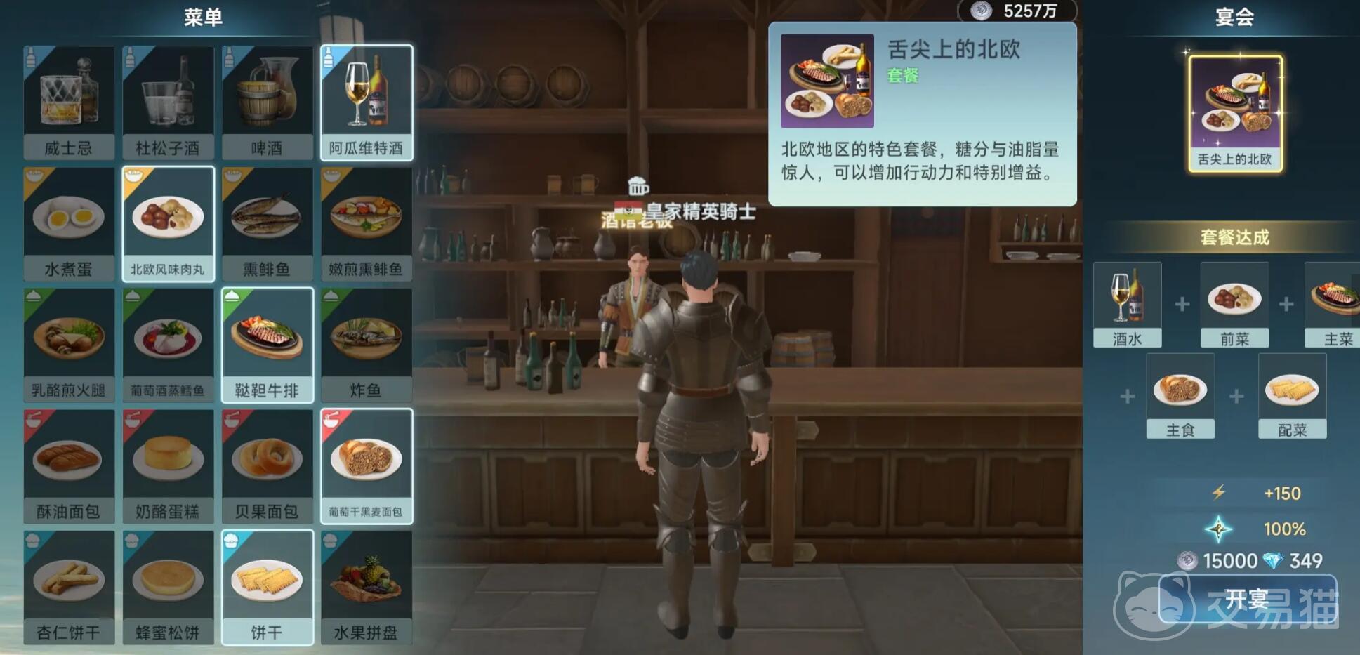 游戏中角色行动力也就是体力会因探索、战斗等行为消耗,需通过酒吧用餐补充。每个国家的酒吧提供5-6种菜品组合的套餐,单次用餐可恢复150点行动力,部分套餐附带暴击率提升、航行加速等增益效果。用餐需消耗“大餐券”或钻石,其中大餐券可通过商城促销(300钻/5张)或活动获取,性价比较高。若无餐券,需按菜品组合支付钻石,价格从98钻到248钻不等。