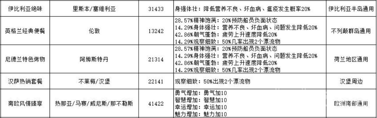 大航海时代传说中,各国酒吧套餐是恢复角色行动力的核心机制,同时也是获取增益效果的重要方法,今天小编为大家梳理一下大航海时代传说各国套餐的效果,其实不同国家的酒吧提供特色套餐,需通过好感度、点餐顺序或特殊任务解锁。而了解套餐能显著提升探索与战斗效率。