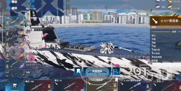 055a武器的搭配其实会有很多的讲究,在导弹方面可以选择x51与红旗26,另外还需要注重于火箭筒,火箭筒尽可能选用asw,鱼雷可选用89,若有黑鲨那显然是更加出色的。