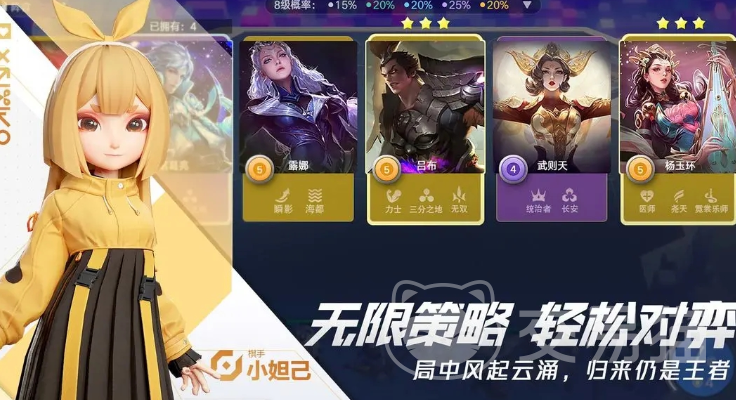其实在该游戏中格外注重策略性,玩家使用棋子技能的时候要格外灵活,并且要布局好整个棋盘,需要将已经获得的资源进行分配。另外还需要制定战术。由于英雄角色的技能不同,而玩家要根据具体的技能属性,进行输出和支援。