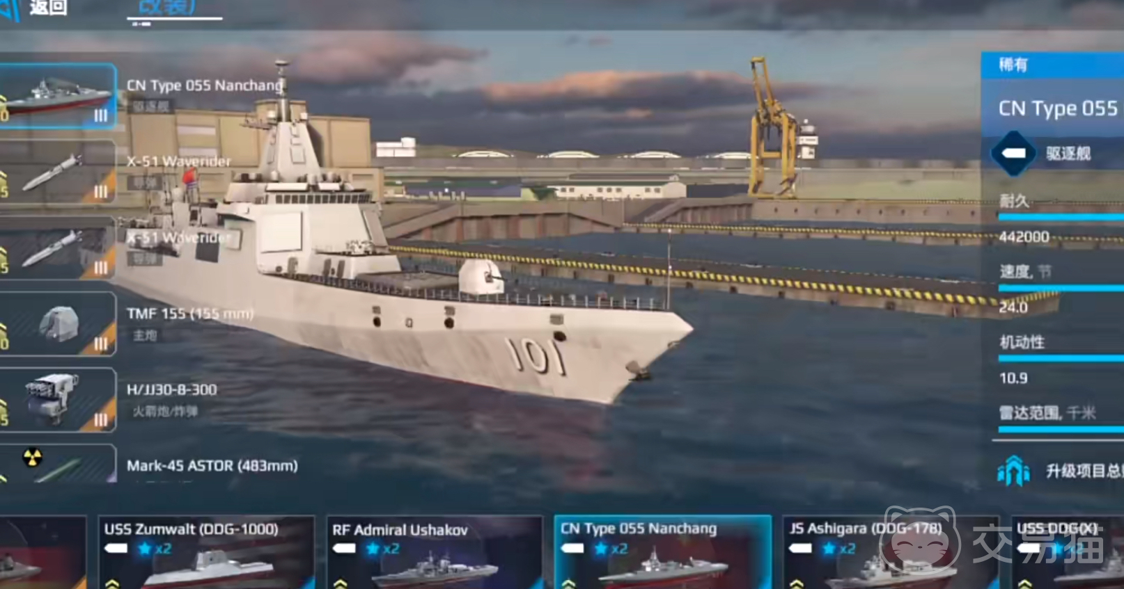 第六艘055A,这可是游戏中的长青顶流,虽然在游戏中经过了各个版本的调整,但是其各项属性依然能维持在较高的水平,并且在实战中的表现也很稳定。