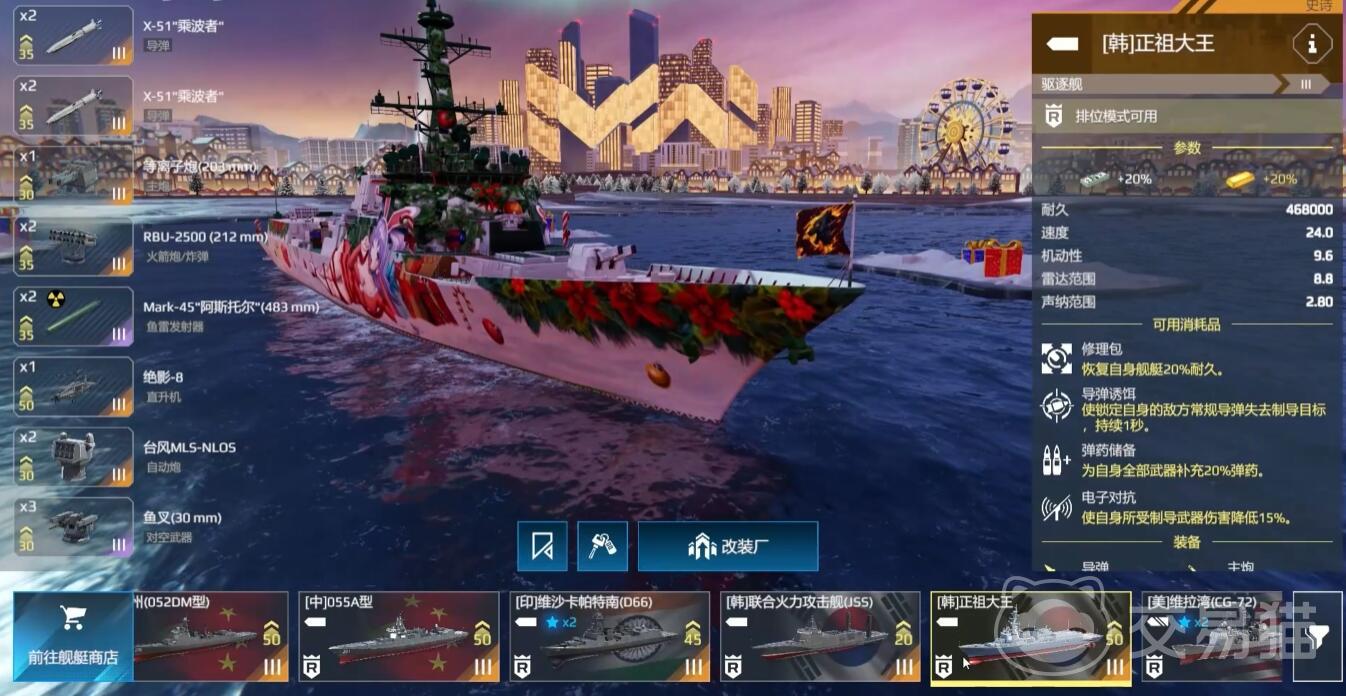 现代战舰之中的正祖大王是一个兼具火力与防御的韩系三级导弹驱逐舰,有着高爆发与战术搭配性成为中后期玩家的一大利器,今天就来为大家介绍现代战舰正祖大王怎么样。它定位为远程压制型舰船,搭载多类型垂直发射系统,但机动性与反潜能力较弱,下面请来一起了解一下吧。