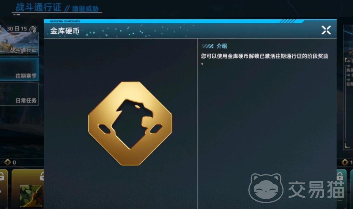 金库硬币主要用于解锁往期通行证奖励,包括限定舰船、武器涂装、稀有装备等,玩家若错过某赛季的“暴风战斗机”、“096核潜艇”等等,可通过消耗硬币重新激活该赛季战令并逐级解锁奖励。兑换时需注意:每期战令需单独购买解锁权限,硬币仅用于兑换已解锁战令内的具体奖励层级。