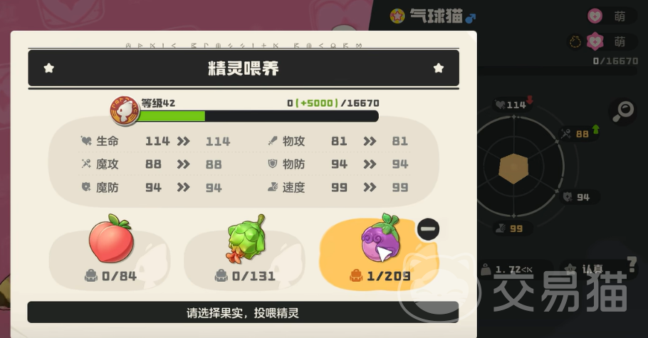 把逗逗捕捉到以后,我们就需要培养它拉,至于该怎么培养的话,也很简单,只要给它不停的喂食就可以哦,等逗逗培养起来后,就会变成更强强大的气球猫。