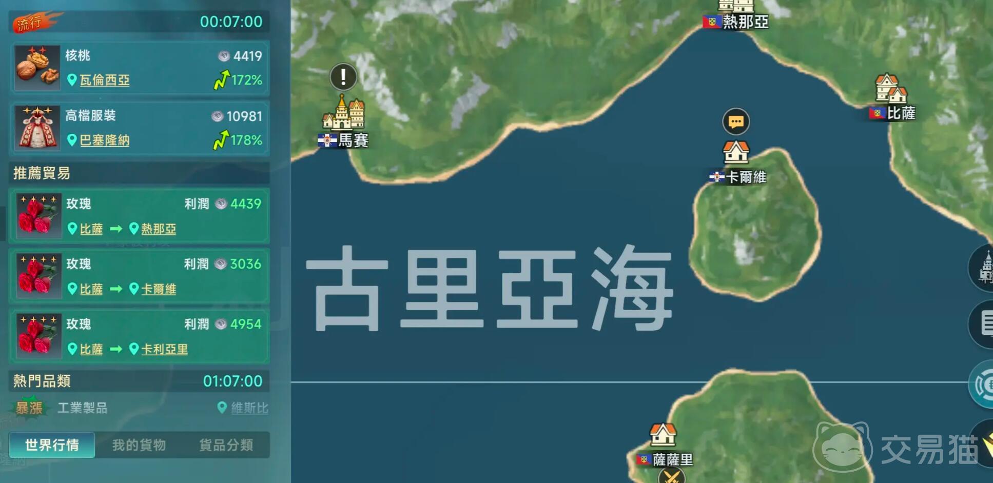首先获取方面最重要的就是贸易,也是获取量最大的方法,玩家可观察各港口物价波动,低买高卖赚取差价。建议优先解锁高价值货物(如香料、丝绸),并组建5艘船的舰队以最大化单次贸易利润。某些港口会定期刷新暴利商品,抓住时机使用“快速航行”功能可大幅提高效率,同时避免由于价格波动导致的亏本。而且在港口周边采集矿石(如铜、铁)或珍稀植物(如香料原料),加工后出售可赚取差价。升级采集技能能提高效率。