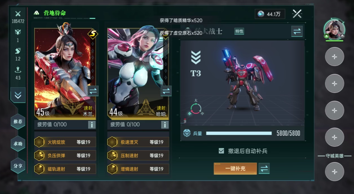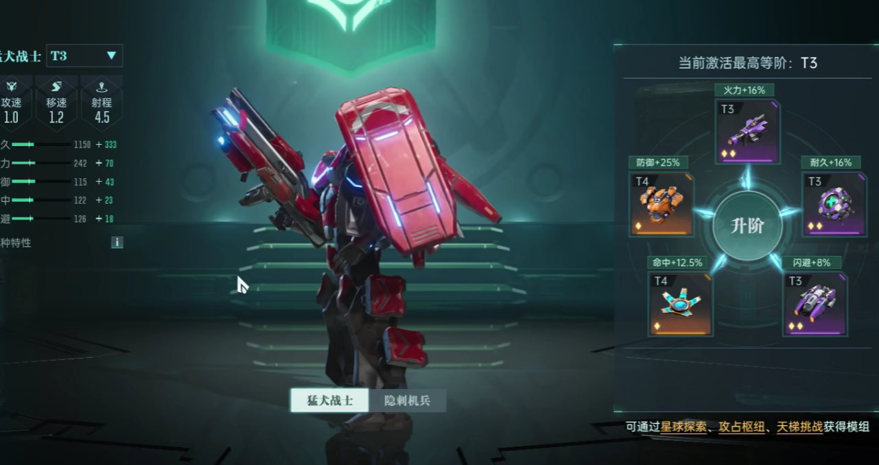 在兵种的选用上面,建议选用飓风战甲,以及空天堡垒,飓风战甲的优先级是最高的,它可以为全队提供15%的闪避加成,空天堡垒可以在切换船舰形态时,同时攻击多个敌方单位,但空天堡垒属于附属选项,玩家如若没有这个兵种,可以替换成为基础步兵。