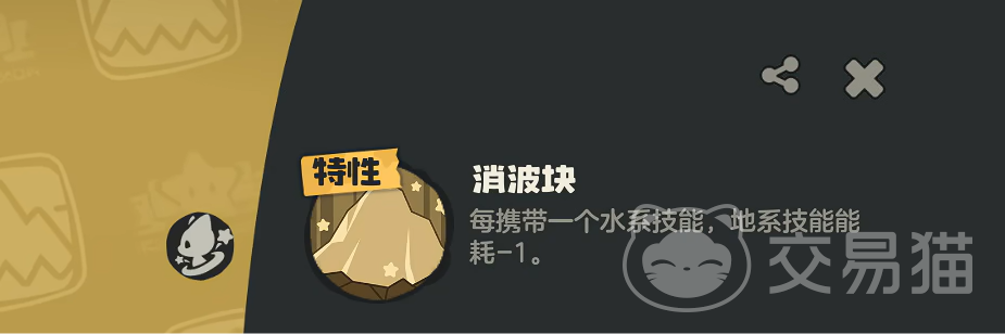 但大家选择将其放上场之后,就可以让他的特性生效。特性叫作消波块,当他每次所携带的水系技能增加一个之后,岩属性技能所消耗的能量就会变少。所以最好搭配一些水系角色跟他一起上场,这样就能够更频繁地用出土属性技能。