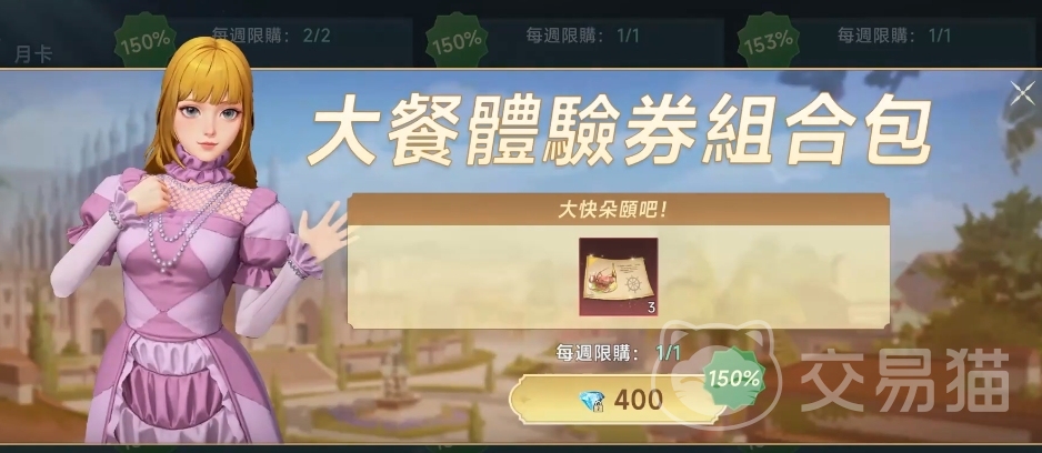 至于大餐券其实也可考虑商城促销中有着300钻5个大餐券,这个真的非常超值,每个玩家目前只会遇到两次该商品,到时可通过600钻买10次大餐券,相当于60钻一次吃席的机会,比首次吃席98钻划算很多,到时候能让玩家获得150点行动力以及额外BUFF效果,若能组成套餐,那么这个优势会更大哦。