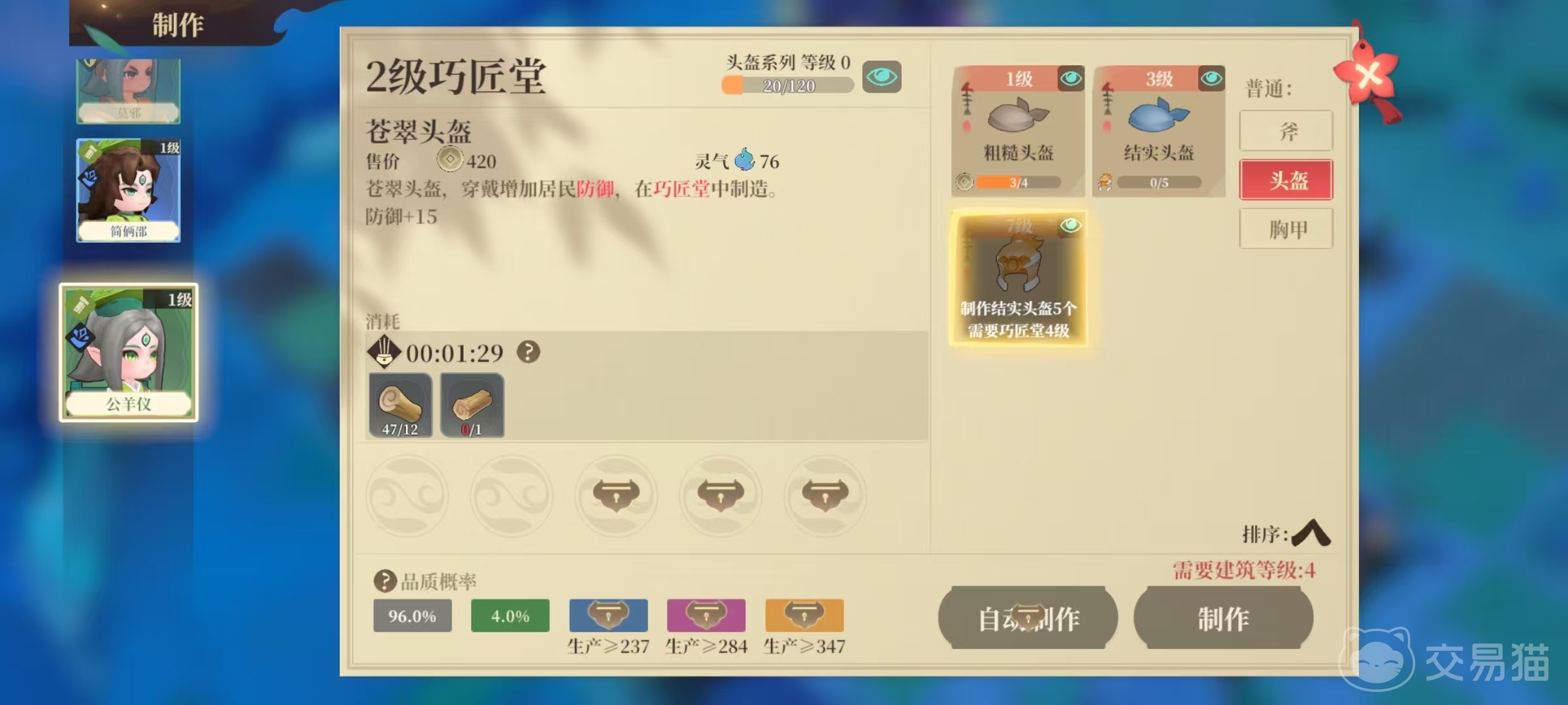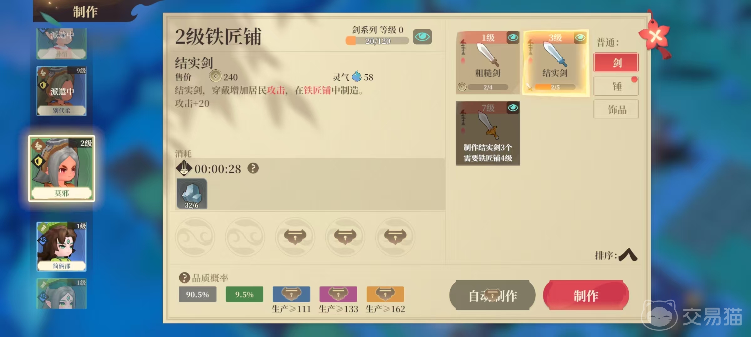 在装备的获取方面,最主要的就是自己动手打造,其中选择正确的居民职业最为关键。有三个职业可以制造装备,分别是工匠、铁匠和裁缝。在这三个职业中,铁匠可以制造出剑、锤、饰品这三种,工匠可以制造出斧、头盔、盔胸甲这三种,裁缝可以制作出杖、护手和护腿这三类。铁匠打造装备需要消耗石头和对应矿石系列稀有资源,工匠打造需要消耗木头以及对应木材系列稀有资源,裁缝打造需要消耗野草以及对应的草料系列稀有资源。