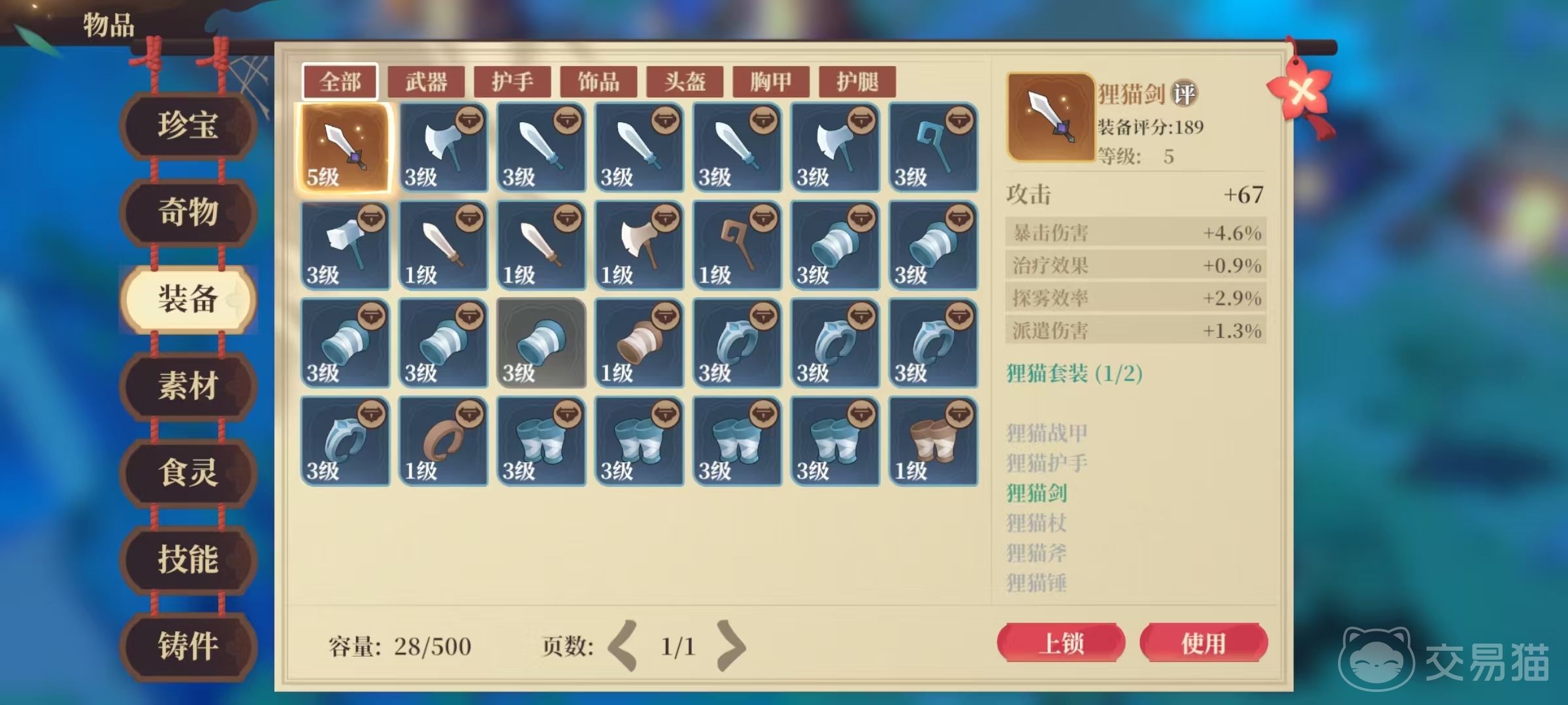 如果大家想要提升居民的战斗力,不仅要重视属性和等级,还需要各种装备来武装居民。获取的装备,除了使用之外还可以用于交易赚取铜币,所以装备是游戏中很重要的组成部分。装备的种类一共有6个,分别是武器,头盔,胸甲,护腿,护手和饰品。武器又分为4种,分别是斧子、剑、杖、锤,所以一共有9种类型的装备可以去获得。