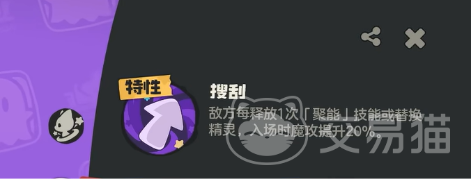另外它的特性叫做搜刮,顾名思义当对方替换角色或者释放技能时,就可以直接提升20%点的魔法攻击力。让他愈战愈勇,这也跟他的幽灵属性非常契合。所以面对技能释放得特别频繁的对手时,他所展现出来的伤害也会变得越来越高。