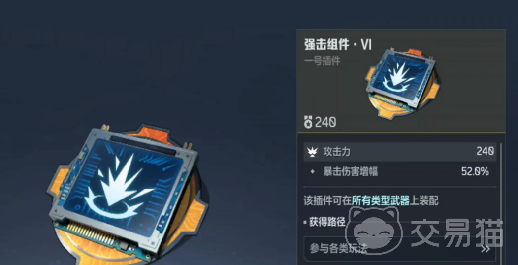 当然大家之所以要获得该组件,肯定是因为强大的属性。所以有部分萌新还不知道这个组件有什么用,作为1号插件。有了它之后可以提升240点的攻击力,另外还能获得高达52%的暴击伤害增幅,这可以瞬间秒杀对手,更适合走爆发流的玩家装配。