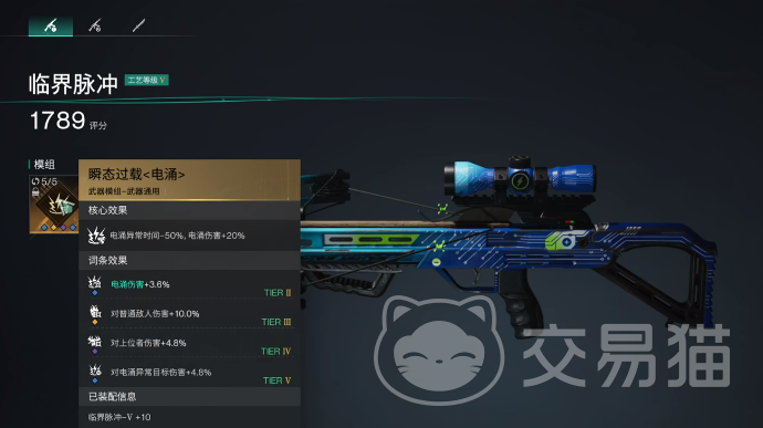 武器模组方面的话,推荐大家用瞬态过载<电涌>。选择这个模组主要是因为它的专属词条,比如说电涌伤害,然后还有电涌异常伤害。接着还能增加电离伤害以及这个电涌暴击伤害,其中电涌伤害、电涌异常伤害,都能够直接增加这把武器的伤害。