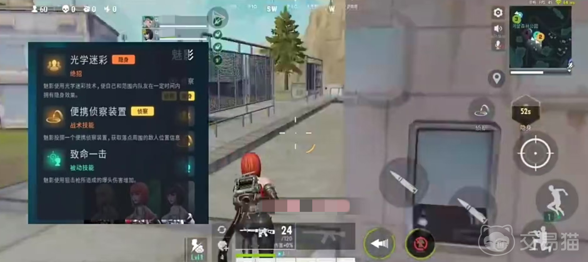 Mk2的被动技能和大招需要配合使用,大招布置一个跳伞装置,mk2弹射到空中进入跳伞状态,对某个范围进行扫描,将范围内敌人信息获取出来。另一个技能还能自动对面前范围发射火箭炮攻击。魅影能使用狙击枪,战斗中远距离爆头伤害很高,战术技能可获取大范围内敌人的信息共享给队友。