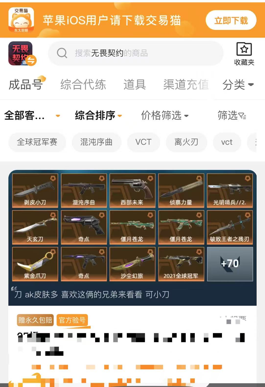 以上就是关于小编给大家分享的无畏契约卖号平台推荐的内容啦,交易猫可以为玩家们提供安全可靠的卖号平台和严格的安全保障还有贴心的售后服务,有卖号需求的宝子们抓紧来交易猫体验吧。