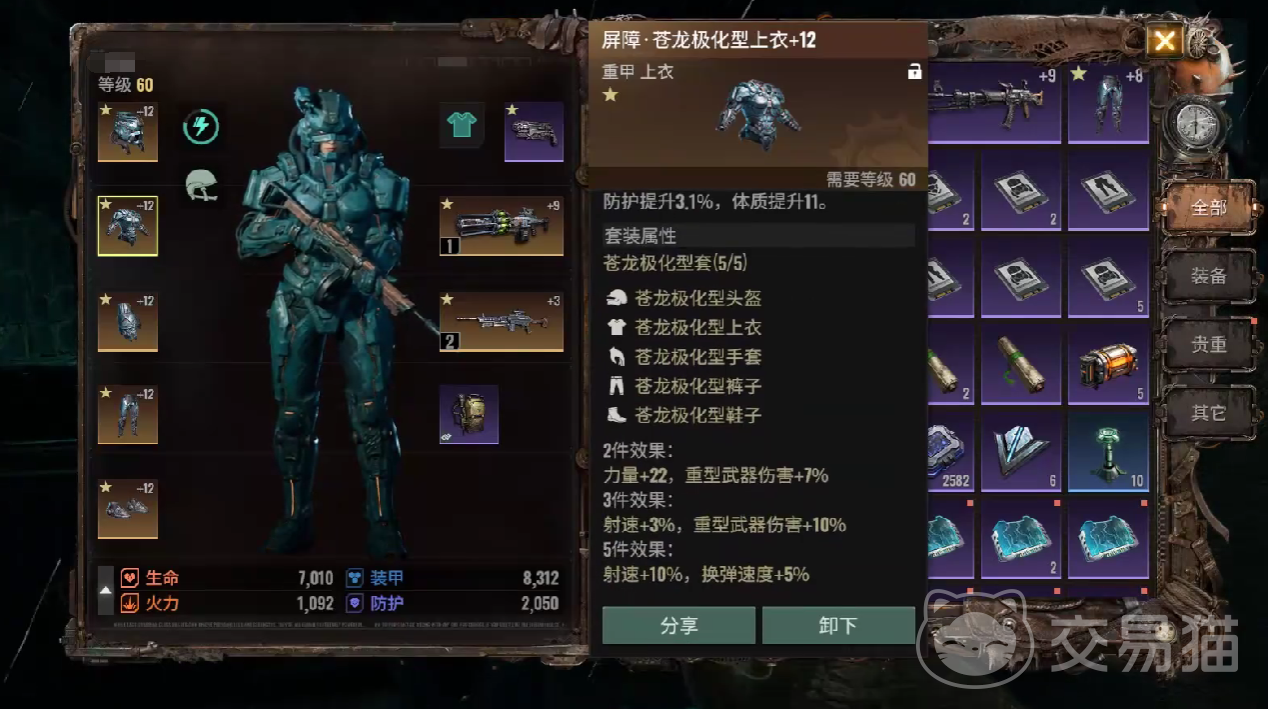 鲲鹏套装的防御属性值是最高的,它适用的武器枪械为步枪和霰弹枪,隶属于轻甲套装的一种,在搭配两件以上时,对于半自动武器会进行伤害的加成。