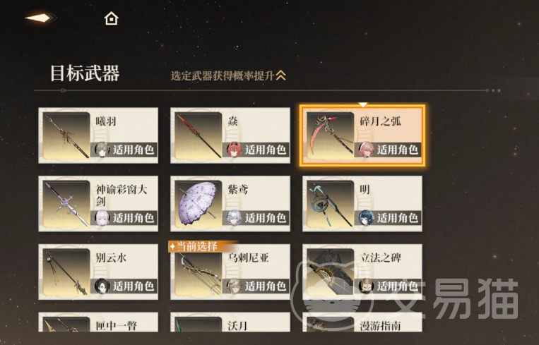 玩家进行武器自选时应该遵循对应的原则,比如要根据角色的具体情况,匹配合适的武器。目前在该游戏中角色涉及到职业问题,其中输出类型的角色,建议选择高攻击力或者是暴击率加倍的武器。辅助类型的角色在选择武器时应该关注冷却或治疗效果提高的武器。