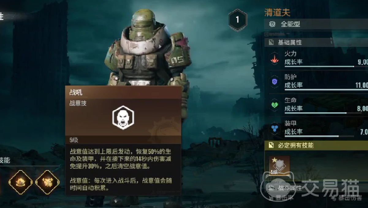 清道夫在游戏内的主要技能总共有三个,战役技能战吼,其效果是可以瞬间恢复,自身50%的生命数值和护甲能力,并且在战吼效果维系期间,可以获取30%的伤害减免。